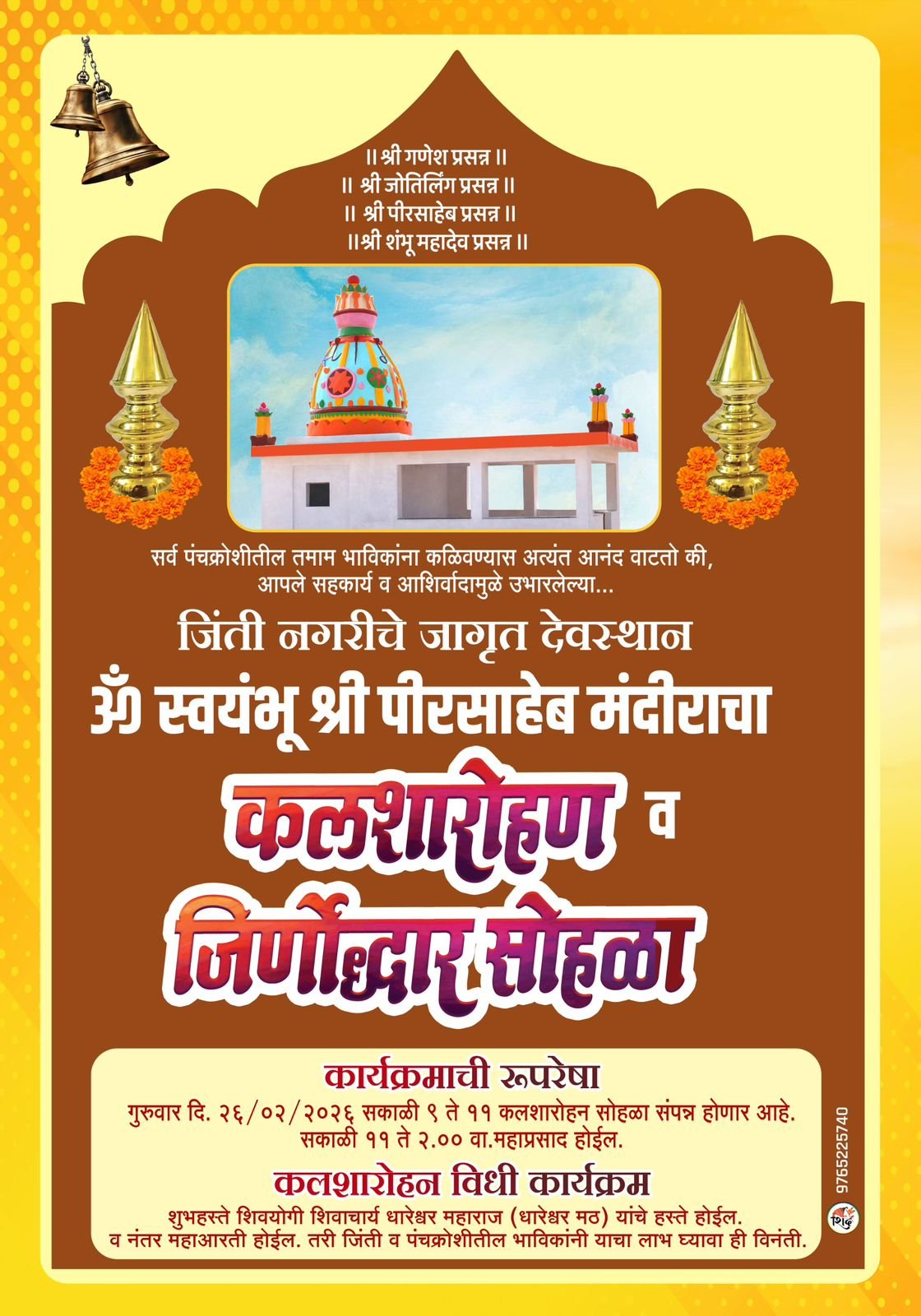 तब्बल ३० दशकांनंतर स्वयंभू श्री पीर साहेब मंदिराचा कलशारोहण व जीर्णोद्धार सोहळा गुरुवारी