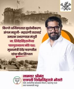 किल्ले अजिंक्यतारा सुशोभीकरण, संगम माहुली महाराणी ताराबाई स्मारक उभारण्यास मंजुरी; शिवेंद्रसिंहराजेंच्या पाठपुराव्याला मोठे यश