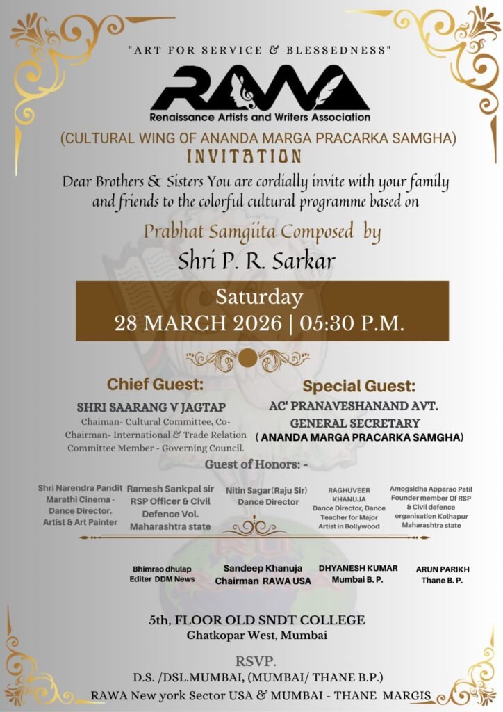 याच पार्श्वभूमीवर ‘राव’च्या वतीने एक भव्य सांस्कृतिक कार्यक्रमाचे आयोजन करण्यात आले आहे. हा कार्यक्रम २८ मार्च रोजी सायंकाळी ५:३० वाजता घाटकोपर (पश्चिम) येथील एसएनडीटी कॉलेजच्या सभागृहात संपन्न होणार आहे.