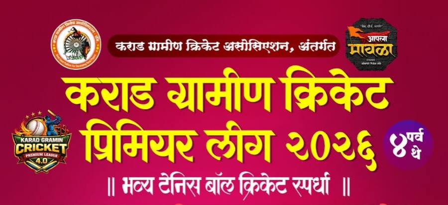 नवी मुंबई : कराड ग्रामीण क्रिकेट असोसिएशनच्या वतीने ‘कराड ग्रामीण क्रिकेट प्रिमियर लीग २०२६ (KGPL 4.0)’ या भव्य टेनिस बॉल क्रिकेट स्पर्धेचे आयोजन शुक्रवार, दि. १७ एप्रिल ते रविवार, दि. १९ एप्रिल २०२६ दरम्यान करण्यात आले आहे.