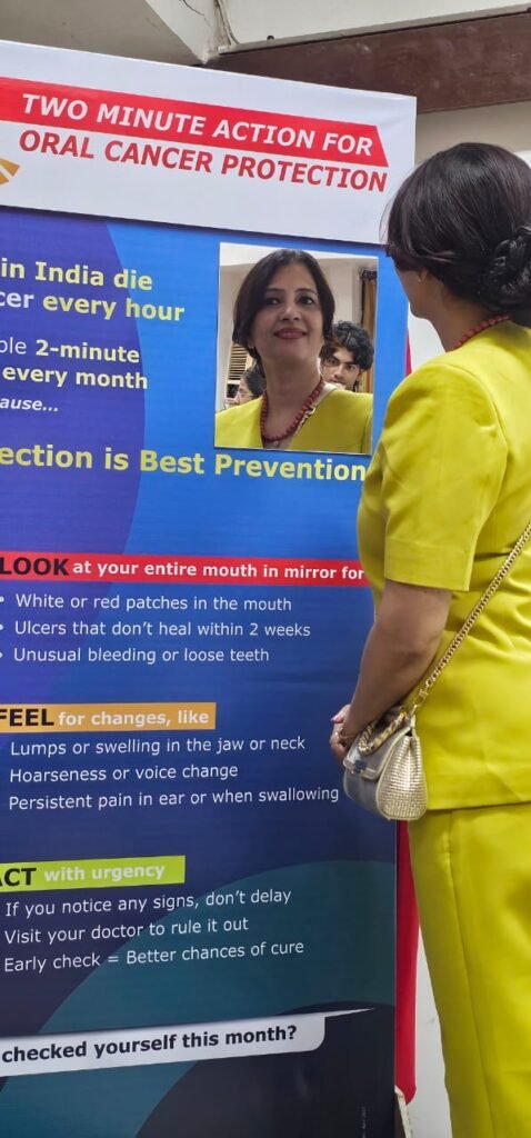 हेड अँड नेक कॅन्सर जागरूकता महिन्यानिमित्त मर्क स्पेशालिटीज प्रायव्हेट लिमिटेड यांच्या पुढाकाराने सुरू करण्यात आलेली तोंडाच्या कर्करोगापासून संरक्षणासाठी दोन मिनिटांची कृती (Two-Minute Action for Oral Cancer Protection) ही मोहीम #ActAgainstOralCancer या हॅशटॅगअंतर्गत मुंबईत मोठ्या प्रमाणावर राबविली जात . या मोहिमेद्वारे नागरिकांना आरशासमोर दोन मिनिटांत स्वयं तपासणी करून तोंडाच्या कॅन्सरच्या सुरुवातीची लक्षणे ओळखण्यास आणि वेळीच उपचार घेण्यास प्रोत्साहन दिले जात आहे.