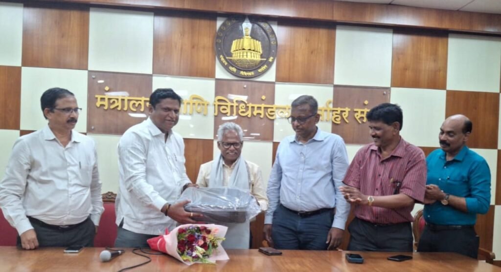 मुंबई (योगेश त्रिवेदी गुरुजी) : पत्रकारांना गेल्या अनेक वर्षांपासून अधिस्वीकृती पत्रिका मिळवून देण्यासाठी प्रयत्न करणारे, डोक्यावर बर्फ आणि जिभेवर साखर घेऊन वावरणारे, नियमाप्रमाणे वागणारे, माहिती व जनसंपर्क महासंचालनालयाचे अधिकारी श्री. संजय महाले हे नियत वयोमानानुसार गुरुवार, ३० एप्रिल २०२६ रोजी शासनाच्या प्रदीर्घ सेवेतून सेवानिवृत झाले. विशेष म्हणजे त्यांचा गुरुवारी वाढदिवस होता. याचे औचित्य साधून मंत्रालय आणि विधिमंडळ वार्ताहर संघाच्या वतीने पत्रकार कक्षात त्यांना सन्मानित करण्यात आले. मंत्रालय आणि विधिमंडळ वार्ताहर संघाचे अध्यक्ष दिलीप सपाटे यांनी शाल आणि पुष्पगुच्छ देवून त्यांचा सन्मान केला. यावेळी संघाचे माजी अध्यक्ष मंदार पारकर, प्रमोद डोईफोडे, कार्यकारिणी सदस्य राजन शेलार, खंडूराज गायकवाड हे उपस्थित होते.
