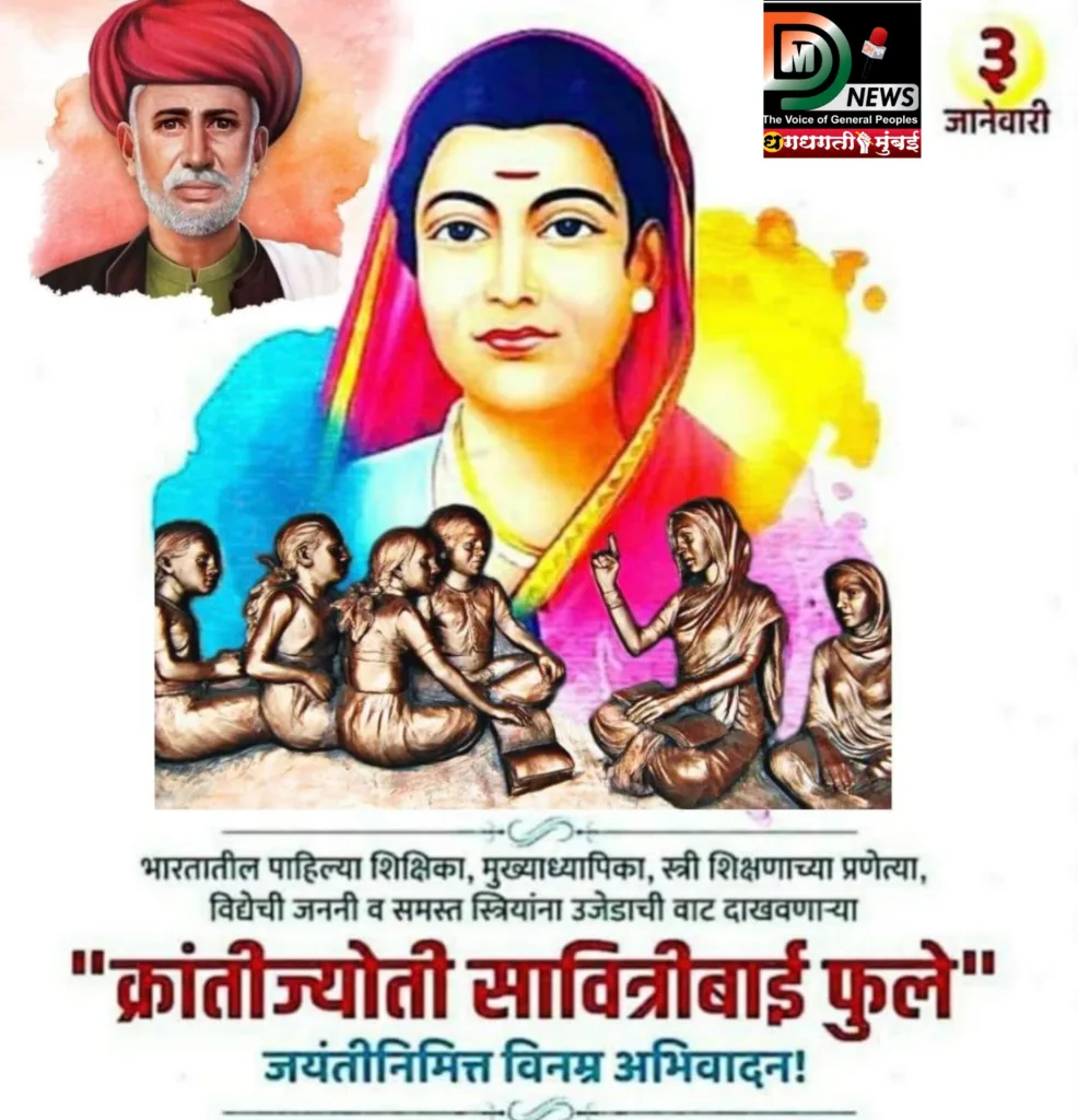 महाराष्ट्रातील पहिल्या स्त्री शिक्षिका सावित्रीबाई फुले यांची आज म्हणजे ३ जानेवारी २०२३ रोजी १९४ वि जयंती. आज त्यांच्या जयंतीदिनी त्यांचे स्मरण करणे हे आपले कर्तव्यच आहे. सावित्रीबाई फुले यांचा जन्म ३ जानेवारी १८३१ रोजी साताऱ्याजवळील नायगाव या गावी झाला. त्यांच्या आईचे नाव लक्ष्मीबाई तर वडिलांचे नाव खंडूजी नेवसे असे होते. त्यांचे वडील गावचे पाटील होते. ज्या काळात स्त्रियांना घराच्या बाहेर पडायचे बंधन होते, त्याकाळात सावित्रीबाईंचा जन्म झाला. असे असले तरी सावित्रीबाई मात्र निडर स्वभावाच्या होत्या. त्या लहान असतांना एका दुबळ्या मुलाचे फुले पळवणाऱ्या धटिंगणाला त्यांनी अद्दल घडवली होती तसेच त्यांच्या घरासमोरील झाडावर असणाऱ्या घरट्यातील पक्षांची अंडी खाणाऱ्या नागाला त्यांनी ठेचून मारले होते. वयाच्या नवव्या वर्षी त्यांचा विवाह महात्मा जोतीराव फुले यांच्याशी झाला. जोतीराव तेंव्हा तेरा वर्षाचे होते. त्याकाळी बालविवाहाची परंपरा होती, अगदी पाळण्यात देखील विवाह लावले जायचे. महात्मा जोतीराव फुले म्हणजे महाराष्ट्रातील आद्य समाजसुधारक. जोतीरावांना मातृप्रेम लाभले नाही. त्यांच्या मावस भगिनी सगुणा यांनी त्यांचा सांभाळ केला. सगुणा इंग्रज अधिकाऱ्याकडे दाई म्हणून काम करायच्या त्यामुळे त्यांना इंग्रजी कळायचे. आपल्या जोतीरावने देखील इंग्रजी फाडफाड बोलले पाहिजे असे त्यांना वाटायचे. त्यांनी जोतीरावांना शिकण्यास प्रेरित केले. जोतीरावही शिकले नंतर जोतिरावांनी सावित्रीबाई यांनाही शिकवले. मुलींच्या शिक्षणाचे महत्व जाणून मुलींसाठी शाळा काढण्याचा निर्णय त्यांनी घेतला. ते नेहमी म्हणत एक मुलगी शिकली तर संपूर्ण कुटुंब शिकते म्हणून १ जानेवारी १८४८ रोजी पुण्यातील भिडे वाड्यात मुलींसाठी पहिली शाळा काढली. या शाळेत सावित्रीबाई फुले मुख्याध्यापक म्हणून काम पाहू लागल्या. या शाळेत सुरवातीला दोन मुली होत्या वर्षअखेर या शाळेतील मुलींची संख्या ४० ते ४५ पर्यंत पोहचली. या शाळेमुळे शूद्र समजल्या जाणाऱ्या स्त्री वर्गास ज्ञानाची कवाडे खुली झाली. पण हे चांगले काम त्याकाळातील सनातनी वर्गास रुचले नाही. मुली शाळेसाठी घराबाहेर पडू लागल्याने धर्म बुडाला अशी आरोळी ठोकत या सनातनी लोकांनी सावित्रीबाई व जोतीरावांच्या या महान कार्यास विरोध केला. सावित्रीबाई फुले यांच्या अंगावर शेण गोळे फेकले. काहींनी तर अंगावर हात टाकण्याचाही प्रयत्न केला पण फुले दांपत्य डगमगले नाही. घेतलेला वसा त्यांनी सोडला नाही. कितीही विरोध झाला तरी ध्येयापासून ते विचलित झाले नाही. जिद्दी व ध्येयवादी फुले दांपत्यांनी ज्ञानदानाचे आपले पवित्र कार्य चालूच ठेवले. जोतिरावांनी काढलेल्या शाळ
