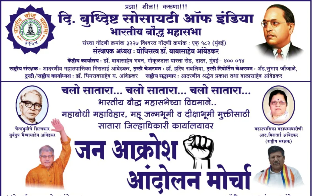 सातारा(नितीन गायकवाड) : दि बुद्धिष्ट सोसायटी ऑफ इंडिया (भारतीय बौद्ध महासभा) यांच्या नेतृत्वाखाली १७ सप्टेंबर २०२५ रोजी दुपारी १ वाजता