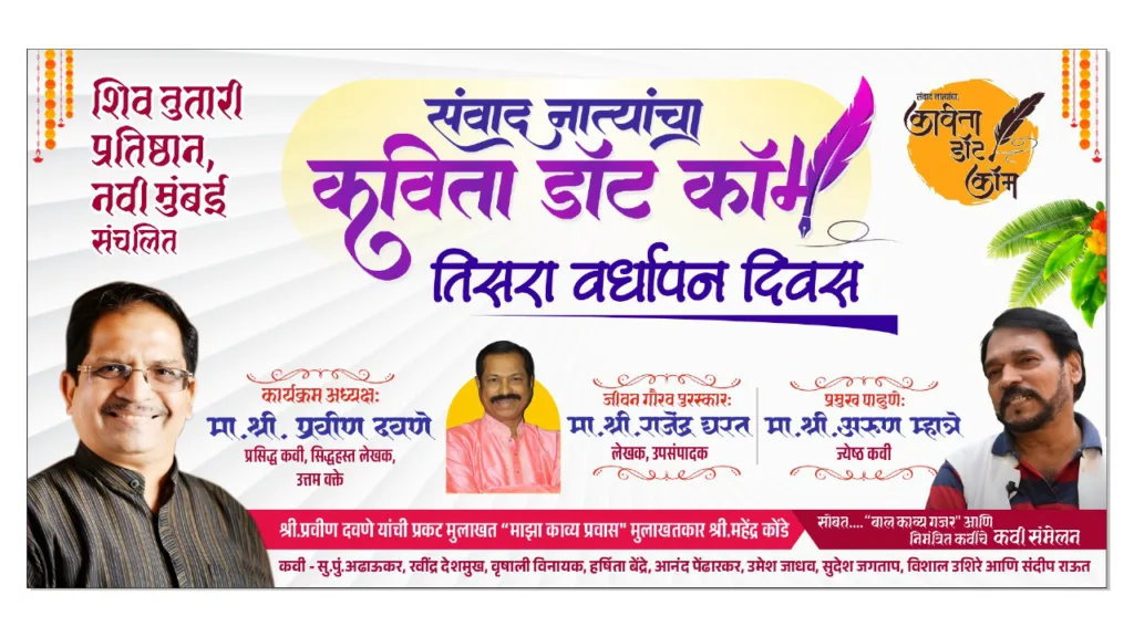 नवी मुंबई : नवोदित कवींना लेखनासाठी व्यासपीठ देणारी ‘कविता डॉट कॉम’ ही साहित्यिक संस्था आपल्या तिसऱ्या वर्धापन दिनाचे औचित्य साधून