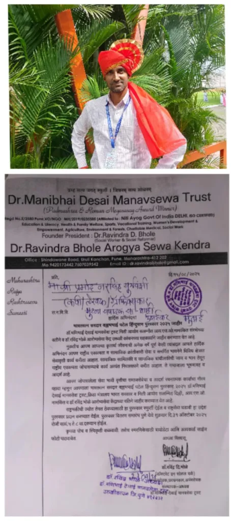 प्रतिनिधि मुंबई : मुंबई शहरातील साहित्यिक, फिल्म मेकर, सा.आम्ही मुंबईकर वृत्तपत्राचे संपादक प्रमोद नरसिंग सूर्यवंशी यांना भारतरत्न सरदार वल्लभभाई पटेल