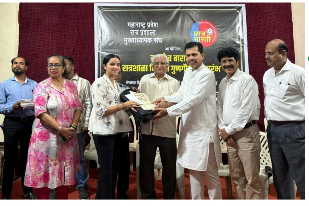 मुंबई : महाराष्ट्र प्रदेश रात्रप्रशाला मुख्याध्यापक संघ आणि छात्र भारती यांच्या वतीने दहावी व बारावीच्या रात्रशाळा विद्यार्थ्यांचा गुणगौरव सोहळा नुकताच