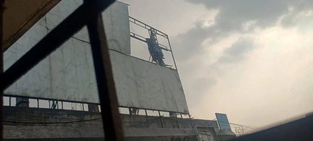प्रतिनिधी (प्रताप भणगे) : कराड शहरातील दत्त चौक येथील सूर्या कॉम्प्लेक्स मध्ये टेरेसवर असणाऱ्या अनधिकृत मोठ्या फ्लेक्स बॅनरचा काही भाग