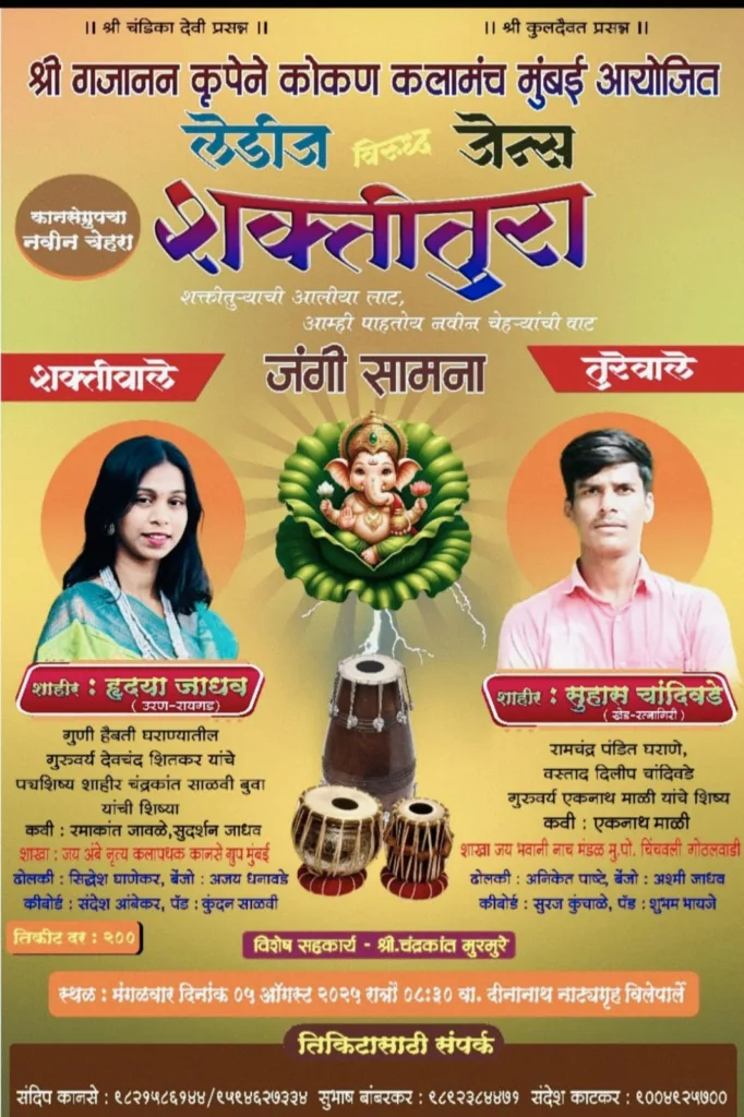 मुंबई (शांताराम गुडेकर) : श्री गजानन कृपेने कोकण कलामंच मुंबई आयोजित महिला विरुद्ध पुरुष असा शक्ती-तुरा सामना कानसे ग्रुपचा विलेपार्ले