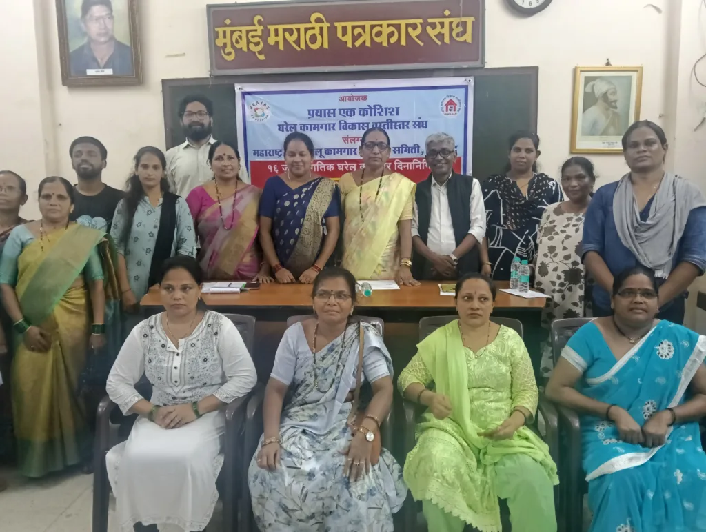 मुंबई : प्रयास एक कोशिश आणि घरेलू कामगार वस्ती विकास संघ संलग्न महाराष्ट्र राज्य घरेलू कामगार समन्वय समिती यांच्या वतीने १६ जून रोजी जागतिक घरकामगार दिनानिमित्त पत्रकार परिषद आयोजित करण्यात आली. ही परिषद मुंबई मराठी पत्रकार संघात पार पडली.