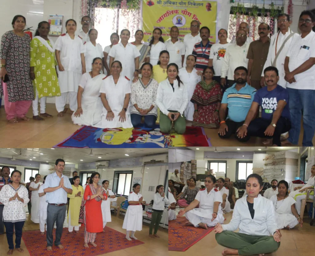कल्याण (रुपाली तावरे) : जागतिक योग दिनानिमित्त कल्याण डोंबिवली महानगरपालिका अंतर्गत शास्त्री नगर रुग्णालय, डोंबिवली पश्चिम येथे २१ जून २०२५ रोजी सकाळी ७ ते ८ दरम्यान योग दिन साजरा करण्यात आला.यावेळी कल्याण डोंबिवली महानगरपालिकेच्या आरोग्य विभागाच्या वैद्यकिय अधिकारी डॉ.दीपा शुक्ल तसेच शास्त्री नगर रुग्णालयाचे मुख्य वैद्यकीय अधिकारी डॉ.योगेश चौधरी यांचा सहभाग होता.याशिवाय इतर डॉक्टर्स तसेच रुग्णालयातील कर्मचारी यांनी योगाचे प्रकार व महत्त्व हे अंबिका योग निकेतन, मुंबई या संस्थेद्वारे प्रशिक्षक श्री.हेमंत पंडित व त्यांची टीम यांच्याकडून प्रात्यक्षिक करून आसने शिकवण्यात आली.आरोग्य सेवेत काम करत असताना मानसिक व शारीरिक ताण दुर करण्यासाठी व रुग्णांना श्वासांची योगासनं, प्राणायाम याबद्दल योगाचे महत्व व जनजागृती करू शकतो असे डॉक्टरांनी मार्गदर्शन करताना नमूद केले.योगा सेशन्स दरम्यान श्री.सुरेश पाटील,सौ.रुपाली तावरे व सौ.सुलेखा देशमुख या स्टाफने पूर्ण योगा कार्यक्रमाचा कार्यभार सांभाळला.