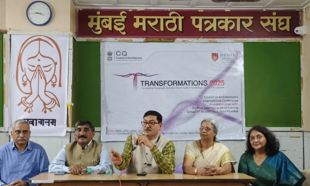 मुंबई : डी.वाय. पाटील स्कूल ऑफ आर्किटेक्चर आणि कौन्सिल ऑफ आर्किटेक्चर यांच्या सहकार्याने २६ ते २८ जून दरम्यान नवी मुंबईत परिवर्तन २०२५ या ऐतिहासिक परिषदेला सुरुवात होत आहे. विघटनकारी तंत्रज्ञानासह सह-स्क्रिप्टिंग बदल या थीमखाली होणाऱ्या या कार्यक्रमात जगभरातील नामवंत तज्ज्ञ वास्तुकला, डिझाइन व शहरीकरणाच्या भविष्यातील शक्यतांचा वेध घेतील. अशी माहिती मुंबई मराठी पत्रकार संघ येथे पत्रकार परिषदेत परिषदेचे समन्वयक वास्तुविशारद प्राध्यापक अभय पुरोहित यांनी दिली.