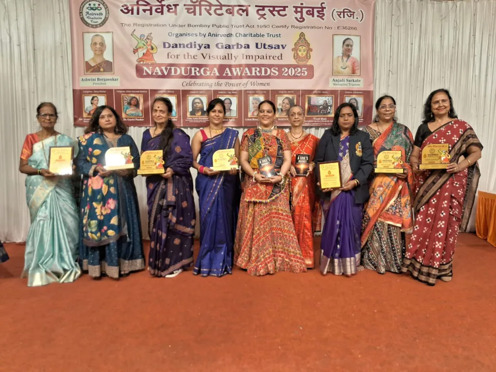 मुंबई : अनिर्वेध चॅरिटेबल ट्रस्ट च्या वतीने, दरवर्षी विविध श्रेत्रात उल्लखनीय कार्य करणा-या महिलांचा “नवं दुर्गा पुरस्कारा ” ने सन्मानीत करण्यात येते. २०२५ वर्षीचा पुरस्कार – निर्मला सामंत – प्रभावळकर ( माजी महापौर ), डॉ.गायत्री पांडव, सिल्व्हिया फार्नांडिस ( स्पिरिट्युअल ), नेहा पावसकर ( अंध स्पोर्ट्स कोच ), सावली परब ( योगा शिक्षिका ),अर्जंना भारत गणेशपुरे ( सेलिब्रेटी ), सिचिता महाले ( शिक्षिका ), विराली मोदी (मोटीवेशनल स्पीकर ) व वंदना मिरचंदा (उद्योजिका ) यांना जाहीर झाला.