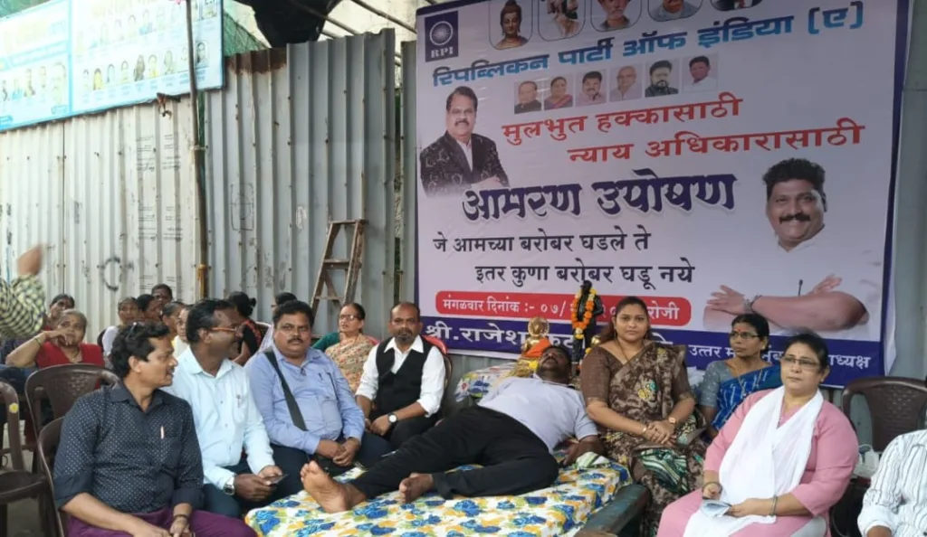 मुंबई : सांडपाण्याची समस्या, पाणी गळती, स्वच्छतेचा अभाव या सर्व सोयी सुविधाच्या अभावी दुर्गंधी पसरून नागरिकांचे आरोग्य धोक्यात आले असल्याने रिपब्लिकन पार्टी ऑफ इंडिया आठवले गटातर्फे सुरू आमरण उपोषण सुरू करण्यात आले आहे