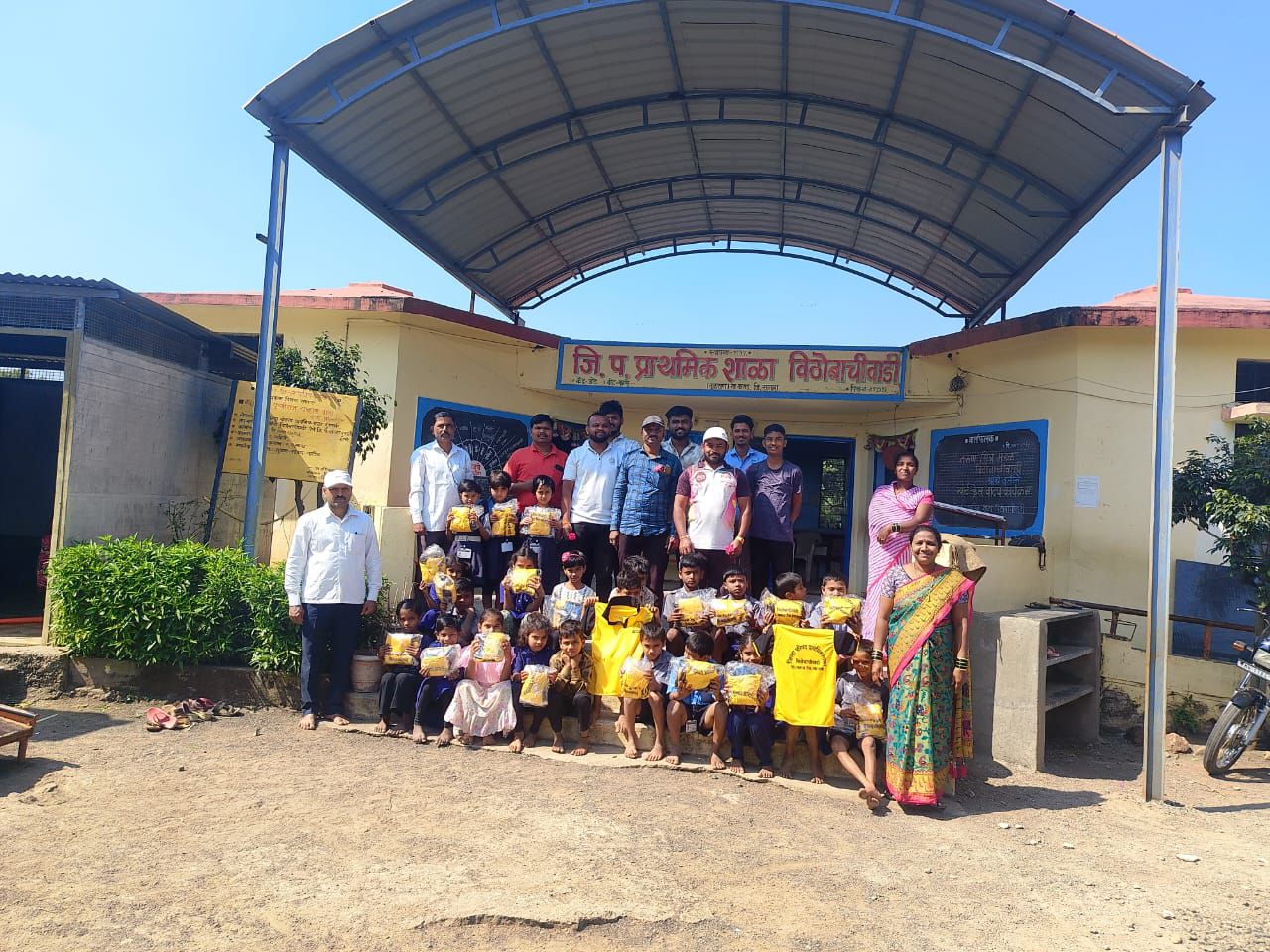 कराड(प्रताप भणगे) : विठोबाचीवाडी, ता. कराड गावातील तरुण वर्गाने दाखवलेल्या सामाजिक बांधिलकीच्या उत्कृष्ट उदाहरणातून जिल्हा परिषद प्राथमिक शाळा विठोबाचीवाडीला आज स्पोर्ट्स किट, लाईट फिटिंग साहित्य आणि दोन आरसे असे आवश्यक साहित्य प्रदान करण्यात आले. गावातील शाळा ही सर्वांची आपुलकीची जागा मानत तरुणांनी पुढाकार घेत सर्वांसमोर आदर्श ठेवला आहे.शाळेतील विद्यार्थ्यांसाठी स्पोर्ट्स किट देण्यात आले असून यासाठी वैभव मलगौंडे यांनी ₹७५०० चे विशेष सहकार्य केले. तर संकेत खोत व जगदीश करांडे यांच्या योगदानातून शाळेसाठी दोन आरसे (₹९५०) देण्यात आले. नव्याने बांधण्यात आलेल्या मल्टीयुनिट शौचालयासाठी आवश्यक लाईट फिटिंग साहित्य (₹२२००) विनायक करांडे, आनंदा खोत, आकाश जामदार, आदित्य चव्हाण व अशोक भणगे यांनी उपलब्ध करून दिले.या उपक्रमासाठी गावातील तरुण वर्ग मोठ्या संख्येने उपस्थित होता. अवधूत करांडे, अशोक भणगे, दिपक करांडे, शुभम खोत, महेश चव्हाण, प्रताप भणगे यांच्यासह सर्व तरुणांनी उत्स्फूर्त सहभाग नोंदवला. तसेच कार्यक्रमास शाळेचे मुख्याध्यापक श्री. पांडुरंग पवार, श्री. दिलीप पाटील, सर्व शिक्षकवृंद, शाळा व्यवस्थापन समिती अध्यक्षा सौ. माधुरी चव्हाण, ग्रा. सदस्य अश्विनी चव्हाण, मदतनीस सौ. आरती चव्हाण, प्रशांत चव्हाण तसेच ग्रामस्थ आणि पालक उपस्थित होते.
