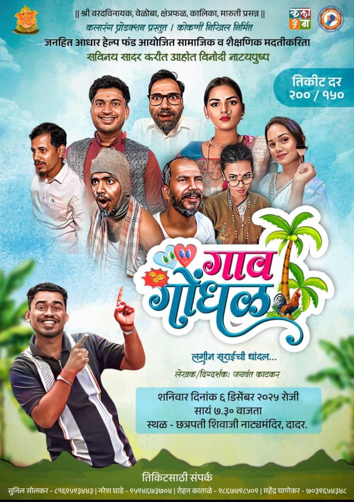 अशी ही जनहित आधार हेल्प फंड संस्था सामाजिक व शैक्षणिक बाजू सांभाळत असताना आता मात्र सांस्कृतिक सहभाग घेण्यासाठी सज्ज होत आहे.शनिवार दिनांक – ०६ डिसेंबर २०२५ रोजी श्री छत्रपती शिवाजी महाराज मंदिर नाट्यगृह, दादर येथे सामाजिक आणि शैक्षणिक मदतीकरीता कलारंग प्रॉडक्शन्स प्रस्तुत व कोकणी निखिल निर्मित आणि जनहित आधार हेल्प फंड आयोजित दोन अंकी कॉमेडी नाटक “गाव गोंधळ…” या नाटकाचे आयोजन केले आहे.रसिक हो आपण हे नाटक पहाण्यासाठी आणि सामाजिक व शैक्षणिक मदतीकरीता तिकीट घेऊन नाटकाचा आनंद घ्यावा असे आवाहन जनहित आधार हेल्प फंड तर्फे करण्यात आले आहे.