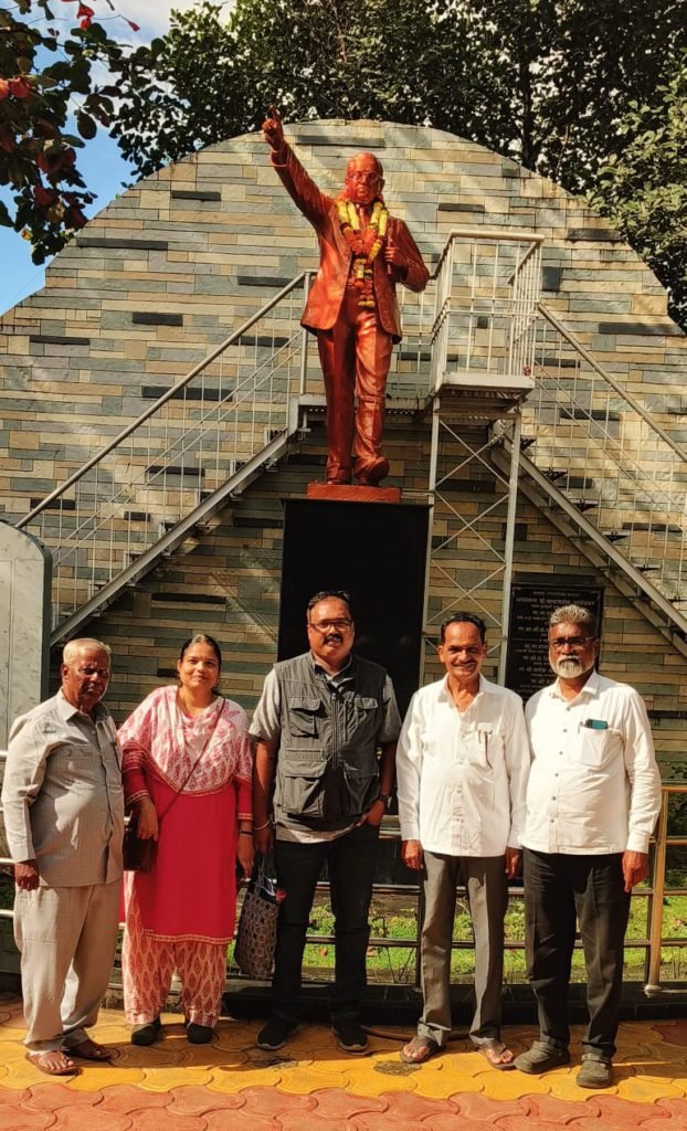 फोटो– साताऱ्यातील महामानव डॉक्टर बाबासाहेब आंबेडकर यांच्या पुतळ्याला अभिवादन करताना भीमसैनिक