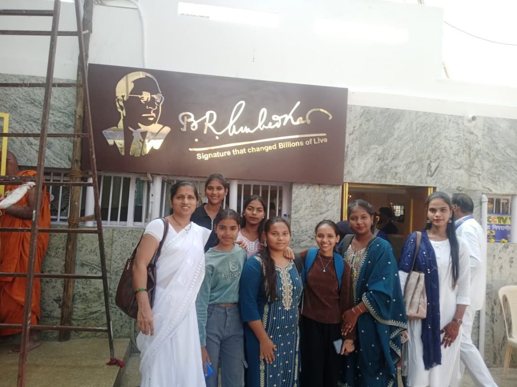 मुंबई (शांताराम गुडेकर) : मैत्रेय बहुउद्देशीय सेवाभावी संस्था संचलित जी.के.एस.कला,वाणिज्य व विज्ञान महाविद्यालय, खडवली येथील शिक्षिका प्रा.सौ.रसिका लोकरे मॅडम व प्रा.श्वेता जाधव मॅडम यांनी महाविद्यालयातील विद्यार्थिनींसह दादर येथील चैत्यभूमीला भारतरत्न डॉ.बाबासाहेब आंबेडकर यांच्या ६९ व्या महापरिनिर्वाण दिनाच्या पूर्वसंध्येला जाऊन महाविद्यालयाच्या वतीने आदरांजली वाहिली.यावेळी विश्वरत्न डॉ.बाबासाहेब आंबेडकर यांनी केलेल्या सामाजिक,आर्थिक,राजकीय अशा महत्वाच्या कार्याचा थोडक्यात आढावा घेऊन विद्यार्थ्यांना सांगण्यात आले.यावेळी महाविद्यालयातील विद्यार्थिनी कु.रितिका मोरे, कु.प्रणिता गायकवाड, कु. सपना बहादुर,कु.सुश्मिता काटे, कु.श्वेता शिंदे, कु. एकता भस्मे इ. विद्यार्थिनींनी सहभाग दर्शवला.तसेच चैत्यभूमी हे स्थळ केवळ स्मारक नाही तर समता, न्याय आणि बौद्ध तत्त्वज्ञानाचे प्रतीक आहे.हल्लीच्या तरुण पिढीमध्ये सहनशीलता कमी झाल्याने त्यांचे मानसिक संतुलन बिघडते.या ठिकाणी आल्यावर कधीही हार न मानता आपण सतत प्रयत्न केला पाहिजे अशी प्रेरणा येथे मिळते.तसेच तेथे उपलब्ध असलेल्या पुस्तकांच्या स्टॉल वर विद्यार्थिनींनी अनेक पुस्तके विकत घेतली.