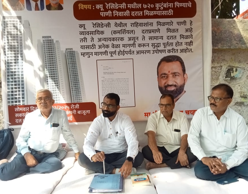 उपोषणस्थळी सोसायटीतील रहिवाशांसह विविध सामाजिक संस्था, स्थानिक नागरिक आणि समर्थक मोठ्या संख्येने उपस्थित होते. “निवासी दर लागू करा” आणि “आर्थिक शोषण बंद करा” अशा घोषणांनी परिसर दुमदुमून निघाला.