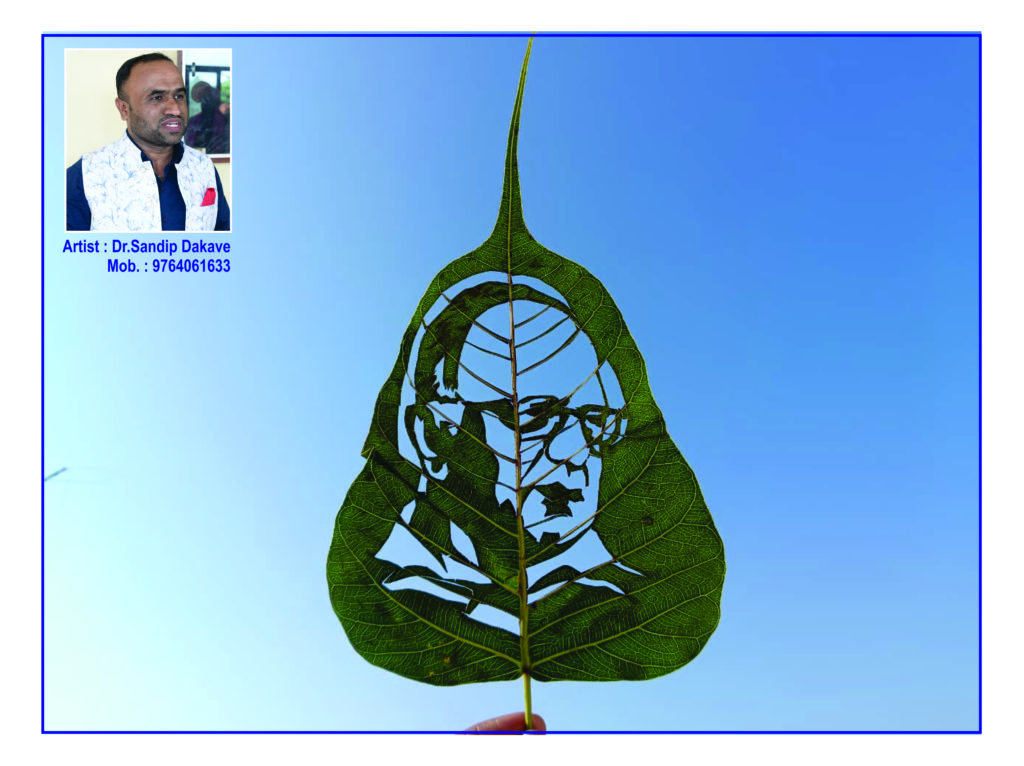 शरद पवार यांची पिंपळपानावरील अप्रतिम कलाकृती. इनसेटमध्ये शेतीमित्र चित्रकार डाॅ.संदीप डाकवे