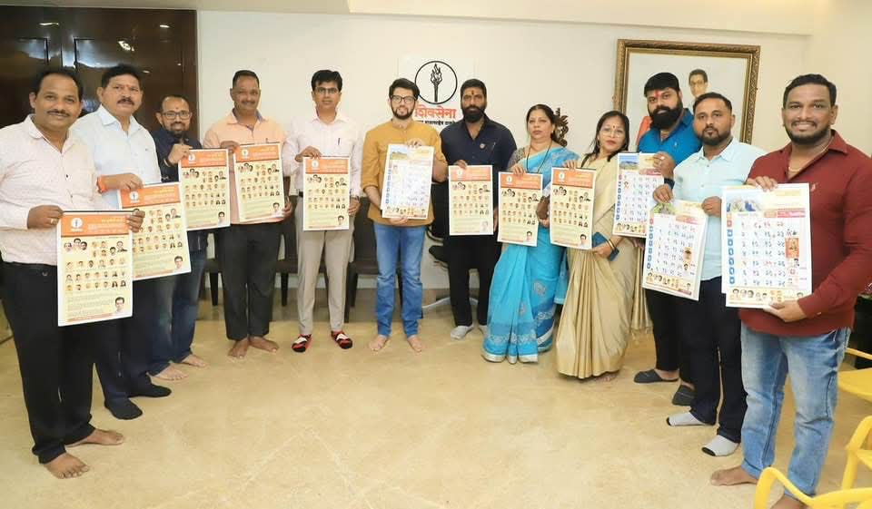 मुंबई : शिवसेना (उद्धव बाळासाहेब ठाकरे) नेते, आमदार व युवासेनाप्रमुख श्री. आदित्यसाहेब ठाकरे यांच्या हस्ते मातोश्री निवासस्थानी शिवसेना सचिव श्री. साईनाथ दुर्गे यांच्या वतीने दादर (प.) वॉर्ड क्रमांक १९२ मधील नागरिकांसाठी प्रकाशित करण्यात आलेली ‘मराठी मने चेतविती, गड-दुर्गांची छाती’ ही येत्या २०२६ वर्षाची दिनदर्शिकेचे प्रकाशन करण्यात आले