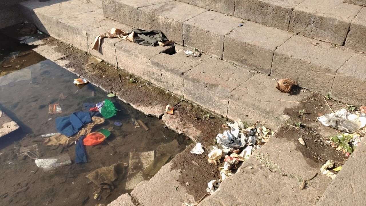 ातारा(विजय जाधव) : लाखा भक्तांच्या हाकेला धावून येणाऱ्या वाई येथील ढोल्या गणपती असून मंदिराच्या परिसरातील घाटाची वयगाव गावकऱ्यांनी रविवारी पहिटे स्वयंस्फूर्तीने स्वच्छता केली. मुख्यमंत्री समृद्ध पंचायतराज अभियानात सहभागी असलेल्या या गावाची आदर्श वाटचाल सुरू आहे. यातून प्रेरणा घेत वाई येथे सामाजिक कार्यकर्त्या रुपाली परिट यांच्या संकल्पनेतून स्थायिक वयगावकर यांच्या सोबत एमआरए सेंटरचा ग्रामपरी टीम आणि गणेशभक्त यात स्तुत्य उपक्रमात सहभागी झाले होते.