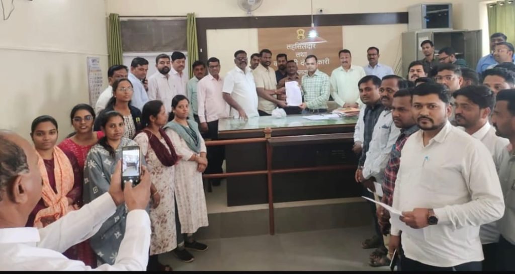 फोटो– सातारा जिल्ह्यातील तलाठी संघटनेच्या वतीने तहसीलदार यांना निवेदन देताना पदाधिकारी (छाया– निनाद जगताप सातारा)