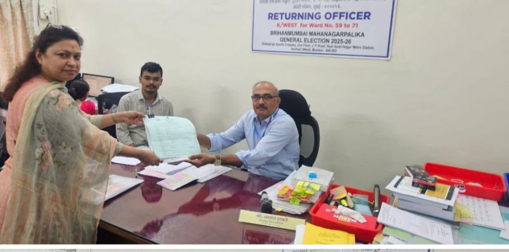 प्रतिनिधी : अंधेरी येथील निवडणूक कार्यालयात आज वॉर्ड क्रमांक ६० (महिला राखीव) साठी भाजपा महाराष्ट्र प्रदेश पदाधिकारी असलेल्या श्रीमती दिव्या ढोले यांनी अपक्ष उमेदवारी अर्ज दाखल केला. विशेष म्हणजे उमेदवारी अर्ज भरण्याचा त्यांचा कोणताही पूर्वनियोजित विचार नव्हता. मात्र कार्यकर्ते, समर्थक आणि स्थानिक रहिवाशांनी सातत्याने आग्रह धरत “ही लढत आमच्यासाठी आहे, तुमचा निर्णय आमचे प्रतिनिधित्व करेल” अशी भूमिका मांडल्याने त्यांनी हा निर्णय घेतल्याचे त्यांनी सांगितले.