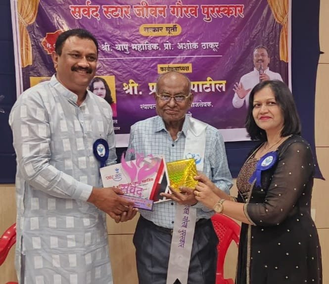 मुंबई : ज्येष्ठ पत्रकार, ठाणे जिल्हा पत्रकार संघाचे माजी सरचिटणीस आणि तरुण पालघर चे संपादक श्री सच्चिदानंद उर्फ बापू महाडिक यांना सर्वद फाउंडेशन या सामाजिक संस्थेचा जीवन गौरव पुरस्कार समारंभपूर्वक प्रदान करण्यात आला. हा सोहळा पालघर जिल्ह्यातील विसावा रिसॉर्ट, केळवे येथे नुकताच संपन्न झाला. कार्यक्रमाची सुरुवात स्वामी समर्थांच्या गीताने झाली. सुप्रसिद्ध समाजसेवक, वक्ते श्री. प्रशांत पाटील यांच्या शुभहस्ते ज्येष्ठ पत्रकार श्री. सच्चिदानंद उर्फ बापू महाडिक आणि सोनोपंत दांडेकर शिक्षण संस्थेचे विश्वस्त प्रा. अशोक ठाकूर यांना सर्वद तर्फे सन्मानपूर्वक पुरस्कार प्रदान करण्यात आला. कार्यक्रमात त्यांच्या वरील चित्रफीत दाखविण्यात आली. “दिग्गज मंडळींना पुरस्कार प्रदान करणे म्हणजे एका अर्थाने माझाच सन्मान आहे”, अशा शब्दांत कार्यक्रमाचे अध्यक्ष श्री. प्रशांत पाटील यांनी आपल्या भावना व्यक्त केल्या. तर आपल्या शब्दसंपन्न प्रास्ताविकातून सर्वद ची उद्दिष्टे, कार्यक्रमाचा हेतू संचालिका डॉ. सुचिता पाटील यांनी विषद केला. श्री. सच्चिदानंद उर्फ बापू महाडिक आणि प्रा. अशोक ठाकूर यांनी आपापल्या जीवनाची वाटचाल सांगून सर्वदला धन्यवाद दिले. मूळ केळवे गावचे रहिवासी श्री. सच्चिदानंद उर्फ बापू महाडिक यांनी पदवी प्राप्त केल्यानंतर प्रारंभी सोनोपंत दांडेकर महाविद्यालय येथे सेवा केली. नंतर सचिवालयात गृहविभागात दहा वर्षे नोकरी केली. अनेक वर्षे शिवसेना नेते, लोकसभेचे माजी सभापती डॉ. मनोहर जोशी यांचे स्वीय सचिव म्हणून काम केले. एका बाजूला हे करीत असतांनाच त्यांनी मराठी पत्रकारितेची भरीव सेवाही तरुण पालघर या साप्ताहिकाच्या माध्यमातून सुरुच ठेवली. पालघर हे ठाणे जिल्ह्यात असतांना बापूंनी ठाणे जिल्हा पत्रकार संघाचे कार्यही केले. सर्वद फौंडेशनच्या या पुरस्कार सोहोळ्याचे सूत्रसंचालन श्रीम. रुपाली राऊत यांनी केले. राष्ट्रगीताने कार्यक्रमाची सांगता झाली.*