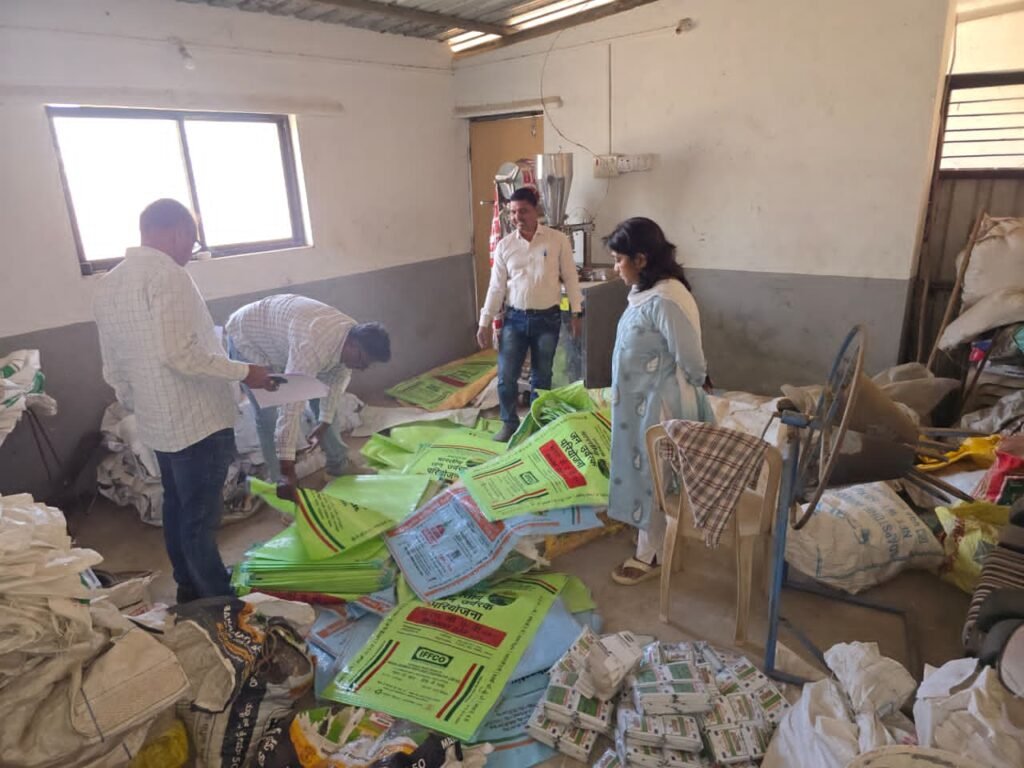 रासायनिक खत बोरिक ऍसिड नॅशनल ऍग्रो हायटेक या कंपनीच्या नावे सुमारे १ मेट्रिक टन . कीटकनाशक क्लोरोपायरीफॉस १० टक्के दाणेदार कीटकनाशक सुमारे २.७ मॅट्रिक टन तणनाशक ग्लाय फॉसेट ४१ टक्के एस एल या तणनाशकाचे सुमारे एक लिटर पॅकिंग मधील ३४० बाटल्या संशयित तननाशक ग्लायफॉसेट २०० लिटर बॅरल मध्ये आढळून आले. याचा वापर एक लिटर पॅकिंग मध्ये करण्यासाठी येणार होता . उंदीर नाशक झिंक फॉस्फेट सुमारे १२ किलो १० ग्रॅम पॅकेटमध्ये तसेच संशयित कीटकनाशक अल्युमिनियम फॉस्फाईड १० ग्रॅम पॅकेटमध्ये सुमारे २० किलो आढळून आले. त्याचबरोबर पॅरादीप फॉस्फेट लिमिटेड तथा जय किसान कंपनीच्या १८ : ४६ व १० :२६.२६ या खताच्या नवीन छपाई केलेल्या सुमारे१५८० रिकाम्या गोण्या इंडियन पोटॅश लिमिटेड या कंपनीच्या म्युरेट ऑफ पोटॅश या खताच्या सुमारे २५० रिकाम्या गोण्या आणि इफको को-ऑपरेटिव्ह लिमिटेड या कंपनीच्या १८ ४६ या खताच्या सुमारे २०० नवीन छपाई केलेल्या रिकाम्या गोण्या आढळून आल्या असा एकूण एकंदर सुमारे २५.५० लाख रुपयाचा मुद्देमाल जप्त करण्यात आला आहे. तपासणी करते वेळी कच्च्या मालाच्या सुमारे १९८० वापरलेल्या गोण्या दिसुन आल्या. त्या अर्थि अंदाज ३० लाखांचे बनावट खत विकले असल्याचा संशय आहे.