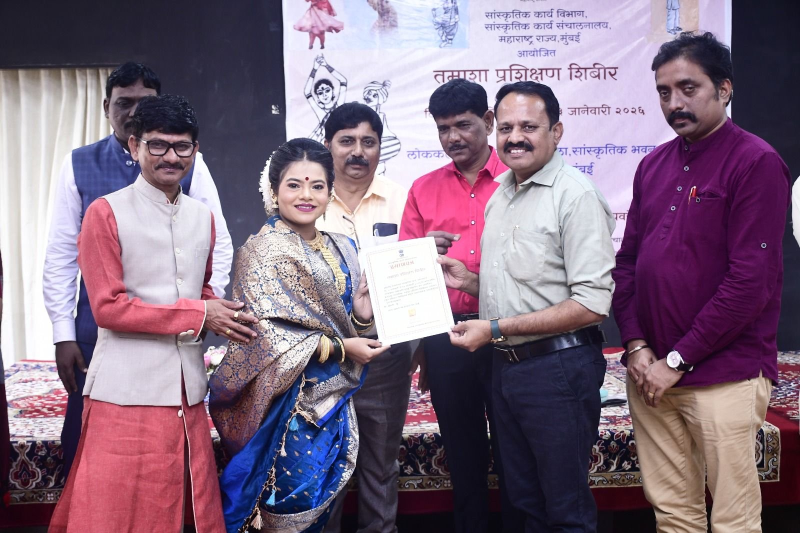 सांस्कृतिक कार्य विभाग व सांस्कृतिक कार्य संचालनालय यांच्या संयुक्त विद्यमाने, मुंबई विद्यापीठाच्या लोककला अकादमीत गेल्या दहा दिवसांपासून सुरू असलेल्या ‘तमाशा प्रशिक्षण शिबिराचा’ सांगता समारंभ मंगळवारी (१३ जानेवारी) उत्साहाच्या वातावरणात संपन्न झाला. लोककलेच्या सप्तरंगांनी नटलेल्या या सोहळ्याला संचालक बिभीषण चवरे, कार्यक्रम अधिकारी निलेश धुमाळ आणि ज्येष्ठ पत्रकार खंडूराज गायकवाड यांसारख्या दिग्गजांची उपस्थिती लाभली.