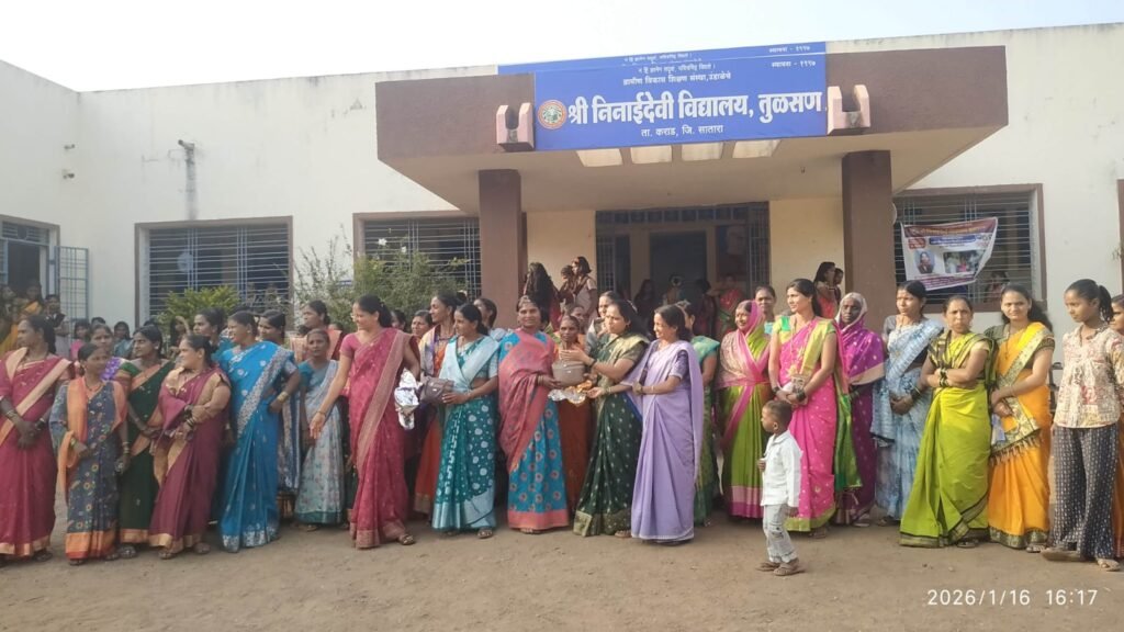 कराड(प्रताप भणगे) : श्री निनाई देवी विद्यालय, तुळसण येथे हळदी-कुंकू कार्यक्रमाचे आयोजन करण्यात आले. या कार्यक्रमात एकूण ११० माता-पालक सहभागी झाल्या होत्या.
