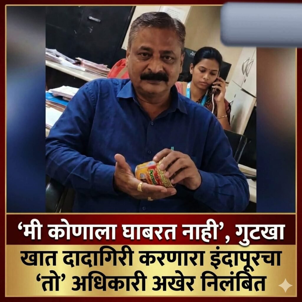 मुंबई(सतिश पाटील) : ‘मी कोणाला घाबरत नाही’, गुटखा खात दादागिरी करणारा इंदापूरचा ‘तो’ अधिकारी अखेर निलंबित