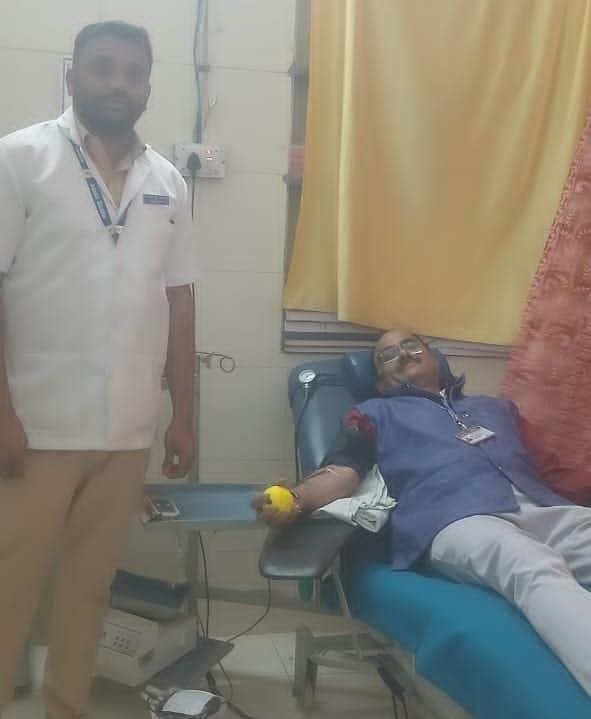 फोटो– श्री दिपक शंकरराव भुजबळ गुरुजी रक्तदान करताना (छाया – अजित जगताप, सातारा)
