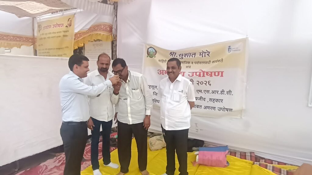 सातारा जिल्हाधिकारी कार्यालयासमोर प्रजासत्ताक दिनापासून महसूल, पोलीस, वनविभाग, सहकार, जिल्हा परिषद, नगरविकास आदी विभागांतील विविध विषयांवर चुकीच्या घडलेल्या घटना, भ्रष्टाचार याविरोधात सुशांत मोरे यांनी आमरण उपोषण सुरू केले होते. नांदल पाठोपाठ इतर काही विषयांची संबंधित विभागाच्या वरिष्ठांनी दखल घेत लेखी आश्वासन तर आचारसंहितेचे कारण पुढे करून चौकशी आणि कारवाईसाठी मुदत मागत उपोषण स्थगित करण्याची विनंती केली. त्यानंतर नगरपालिका उपायुक्त बापट यांच्या हस्ते सरबत देऊन उपोषण स्थगित केले. प्रशासनाने विविध मागण्यांबाबत सकारात्मक प्रतिसाद दिल्याने आमरण उपोषण तात्पुरते स्थगित करत असल्याचे सुशांत मोरे यांनी सांगितले. यावेळी नगरसेवक मनोज शेंडे, शंकर माळवदे उपस्थित होते.