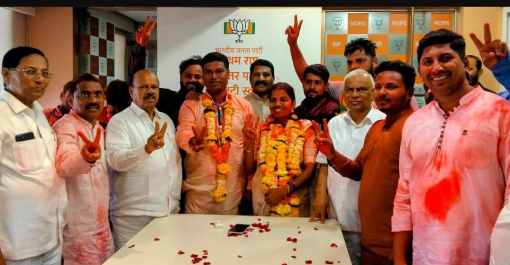 पनवेल(अमोल पाटील) : पनवेल तालुक्यात जिल्हा परिषद व पनवेल पंचायत समितीच्या सार्वत्रिक निवडणुकीत भाजप महायुतीने शेतकरी कामगार पक्ष महाविकास आघाडीचा दारुण पराभव करत ऐतिहासिक विजय मिळवला आहे. पनवेल तालुक्यातील ८ पैकी ८ जिल्हा परिषदेच्या जागा तर पनवेल पंचायत समितीच्या १६ पैकी १५ जागांवर विजय मिळवला. दीर्घकाळ शेकापच्या ताब्यात असलेला हा राजकीय गड भाजप महायुतीने ताब्यात घेतला आहे.पनवेल पंचायत समितीवर एकहाती सत्ता प्रस्थापित केली आहे. भाजप महायुतीला मोठे यश मिळाले.निवडणूक निकालानंतर संपूर्ण पनवेल तालुक्यात आनंदोत्सवाचे वातावरण निर्माण झाले, ‘भाजपमहायुतीचा विजय असो’, ‘एकच वादा प्रशांतदादा’ अशा जोरदार घोषणा देत कार्यकर्त्यांनी जल्लोष साजरा केला.