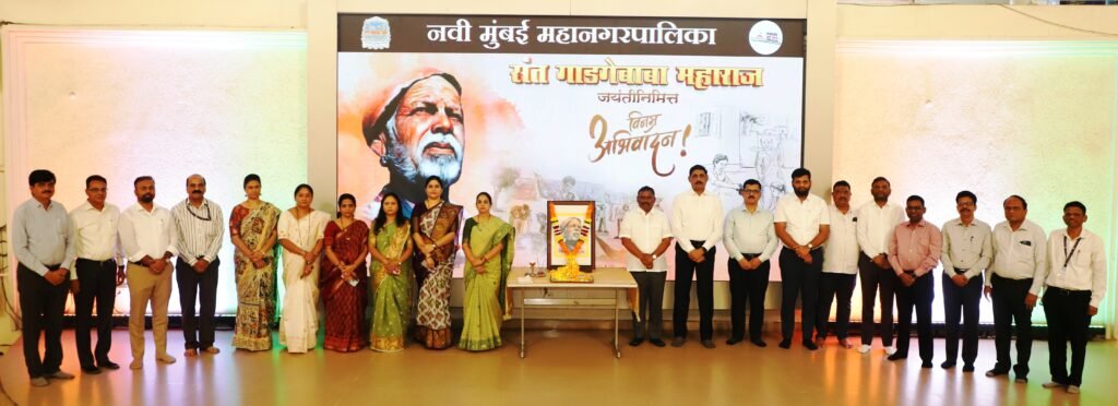 नवी मुंबई : स्वच्छता, सामाजिक न्याय आणि सुधारणांवर भर देणारे आधुनिक संत म्हणून नावजले गेलेल्या संत गाडगेबाबा यांच्या जयंतीदिनाचे औचित्य साधून नवी मुंबई महानगरपालिकेच्या वतीने महापालिका मुख्यालयात ॲम्फिथिएटर येथे बाळशास्त्री जांभेकर यांच्या प्रतिमेस महापौर श्रीम. सुजाता पाटील यांच्या हस्ते प्रतिमापूजन करून अभिवादन करण्यात आले. याप्रसंगी उपमहापौर श्री. दशरथ भगत, महापालिका आयुक्त डॉ.कैलास शिंदे, अतिरिक्त आयुक्त श्री.सुनिल पवार व डॉ.राहुल गेठे, नगरसेविका श्रीम.माधुरी सुतार, श्रीम.सायली शिंदे, श्रीम.शैला पाटील, श्रीम.प्रिती भगत, प्रशासन विभागाचे उपआयुक्त श्री.किसनराव पलांडे, मुख्य लेखा व वित्त अधिकारी श्री.सत्यवान उबाळे, अतिक्रमण विभागाचे उपआयुक्त डॉ. कैलास गायकवाड, मालमत्ताकर विभागाचे उपआयुक्त श्री.अमोल पालवे, अतिरिक्त शहर अभियंता श्री.अरविंद शिंदे, सहा.संचालक नगररचना श्री.सोमनाथ केकाण, मुख्य विधी अधिकारी श्री. अभय जाधव, कार्यकारी अभियंता श्री. तानाजी शिंदे तसेच इतर अधिकारी, कर्मचारी मोठया संख्येने उपस्थित होते.