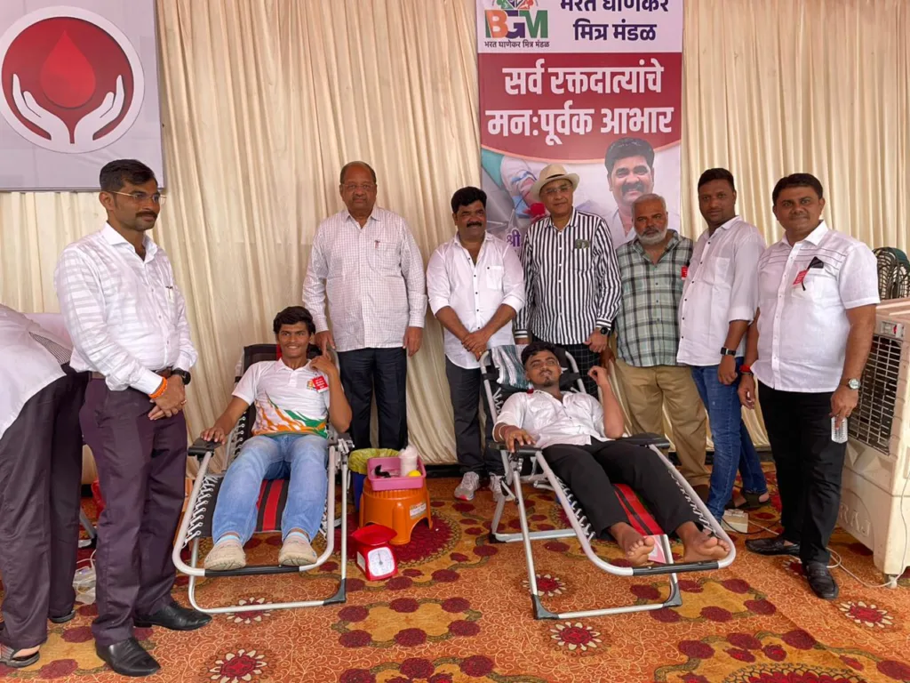मुंबई (प्रतिनिधी) : बोरीवली पूर्व येथील ज्येष्ठ सामाजिक कार्यकर्ते श्री भरत रामचंद्र घाणेकर यांच्या वाढदिवसानिमित्त भरत घाणेकर मित्रमंडळ आयोजित रक्तदान शिबिराला उत्स्फूर्त प्रतिसाद मिळाला. मागाठाणे जवळील छत्रपती शिवाजी महाराज यांच्या अश्वारूढ पुतळ्याच्या समोरील भागात आयोजित करण्यात आलेल्या रक्तदान शिबिरात पाच तासात सुमारे पावणे दोनशे लोकांनी रक्तदान केले. सुमारे एकशे चोपन्न बाटल्या रक्त जमा झाले. बोरीवली रक्तपेढी तर्फे हे रक्तसंकलन करण्यात आले. भारतीय जनता पक्षाचे नेते माजी खासदार गोपाळ शेट्टी, ज्येष्ठ राजकीय विश्लेषक विजय वैद्य, योगेश वसंत त्रिवेदी, ज्येष्ठ सामाजिक कार्यकर्ते श्री श्याम कदम आदी प्रमुख पाहुणे म्हणून उपस्थित होते. वरुण घाणेकर कार्यक्रमास लक्ष्मीकांत नाईक, रमेश घाणेकर, संदेश कोलापटे, संजय घाडगे, सिद्धेश्वर वाघचौरे, नरेंद्र माली, अशोक पडीयार, हरिश्चंद्र कत्वांकर, बिपिन सावंत यांची उपस्थिती लाभली. कार्यक्रम यशस्वी करण्यासाठी गायत्री नाईक, हृदया घाणेकर, रोहित गुप्ता, ओमकार कणसे, गीत घाणेकर, निशांत पेडणेकर, राहुल वाडीकर, पार्थ नगवदरिया आदींनी परिश्रम घेतले.