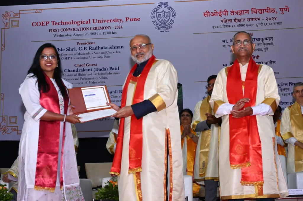 सीओईपी ही संस्था शैक्षणिक उत्कृष्टतेची दीपस्तंभ असून संस्थेच्या पहिल्या पदवीदान समारंभास उपस्थित राहताना आनंद होत असल्याचे सांगून राज्यपाल श्री. राधाकृष्णन म्हणाले, ‘पूर्वेकडील ऑक्सफर्ड’ आणि राज्याची सांस्कृतिक राजधानी म्हणून ओळखले जाणारे पुणे शहर दीर्घकाळापासून शिक्षणाचे माहेरघर आणि सांस्कृतिक पुनर्जागरणाचे केंद्र आहे. ही संस्था केवळ शहरच नव्हे तर संपूर्ण राज्य आणि संपूर्ण देशात तंत्रज्ञानातील नवकल्पना आणि शैक्षणिक विद्वत्तेचे केंद्र म्हणून आपली एक वेगळी प्रतिष्ठा जपत असताना भरभराट करत आहे.