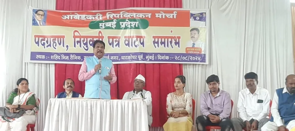 मुंबई (रमेश औताडे) : नेते जे म्हणतील ती पुर्व दिशा तो काळ गेला. आता कार्यकर्ते निर्णय घेतील तिच राजकीय दिशा ठरणार. कार्यकर्त्यांची ताकद राजकीय अस्तित्व निर्माण करणार असे प्रतिपादन आंबेडकरी रिपब्लिकन मोर्चा चे राष्ट्रीय अध्यक्ष नारायण बागडे यांनी केले. रमाबाई आंबेडकर नगर घाटकोपर येथील शहिद भिम सैनिक स्मारक येथिल सभागृहात आयोजित पदग्रहण समारंभात ते बोलत होते.