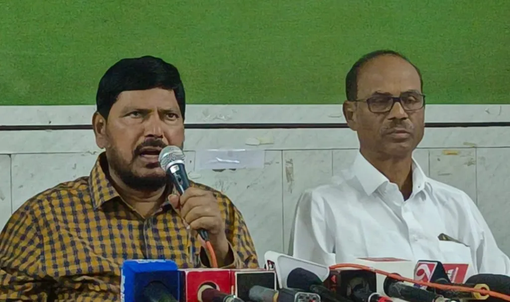 यावेळी आठवले म्हणाले, सामाजिक दृष्ट्या भारतात सामंजस्य निर्माण झाल्यानंतर सामाजिक आरक्षण संपवण्याचा निर्णय काँग्रेस घेईल असे काँग्रेस नेते राहुल गांधी यांनी केलेले वक्तव्य निषेधार्ह आहे. या वक्तव्यातून राहुल गांधींनी काँग्रेस पक्ष आरक्षण विरोधी असल्याचेच उघड झाले आहे. आरक्षण संपविण्याची भाषा करण्याची राहुल गांधीना गरज काय होती ? परदेशात जाऊन आपल्या देशाची बदनामी करणे हे काँग्रेस नेते राहुल गांधींचे उद्योग आहेत. भारतात लोकतंत्र नाही असे परदेशात जाऊन बरळणे चुकीचे आहे. लोकतंत्र आणि आरक्षणबाबत परदेशात जाऊन चुकीची वक्तव्य करून देशाची बदनामी करणाऱ्या राहुल गांधीचा आम्ही तीव्र निषेध करतो असे रामदास आठवले म्हणाले.