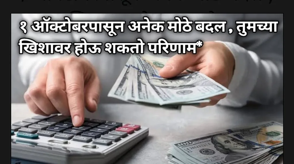 मुंबई(मंगेश कवडे) : सप्टेंबर महिना संपण्यासाठी आता अवघे काही दिवस शिल्लक आहेत. त्यानंतर १ ऑक्टोबरपासून अनेक मोठे बदल पाहायला मिळणार आहेत, ज्याचा थेट परिणाम तुमच्या स्वयंपाकघरावर आणि तुमच्या खिशावर होऊ शकतो. यामध्ये एलपीजी सिलिंडरच्या किंमतीपासून क्रेडिट कार्डपर्यंत आणि सुकन्या समृद्धी, तसंच पीपीएफ खात्याच्या नियमांमधील बदलांचा समावेश आहे.