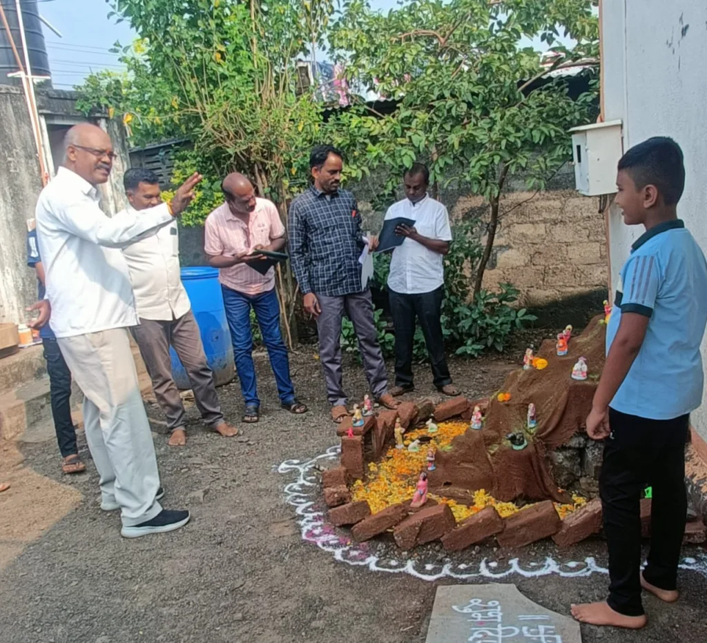 कराड : नांदगाव ता.कराड येथे कै.सौ.द्वारकाबाई सुकरे प्रतिष्ठान व मातोश्री सिंधुताई सुकरे स्मृतीमंच यांच्या वतीने यंदा सलग तिसऱ्या वर्षी भव्य किल्ला बनवा स्पर्धा आयोजित करण्यात आली आहे. यात १०० वर विद्यार्थ्यांनी सहभाग नोंदवला आहे.शनिवारी सकाळी या स्पर्धेच्या परिक्षणाला छत्रपती शिवाजी महाराज यांच्या प्रतिमेचे पुजन करुन व श्रीफळ वाढवून प्रारंभ करण्यात आला. यावेळी स्पर्धेचे संयोजक,परिक्षक व ग्रामस्थ मोठ्या संख्येने उपस्थित होते.