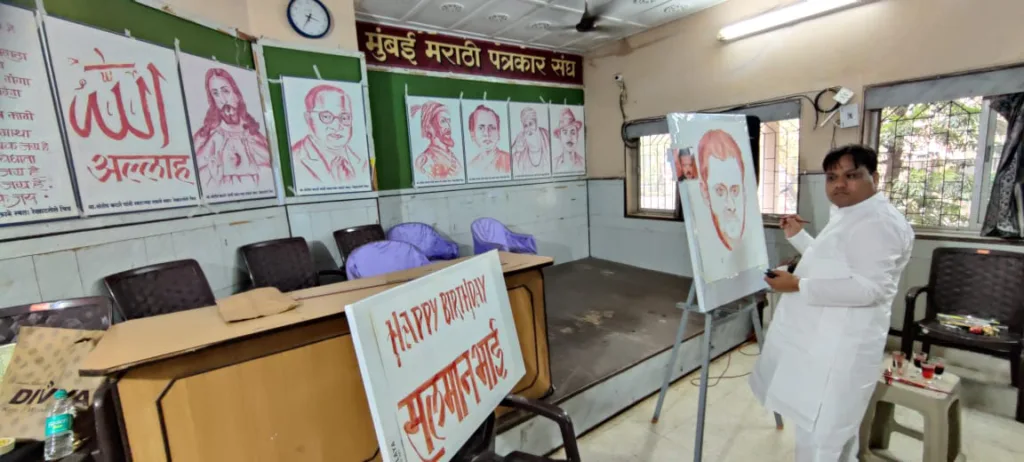 मुंबई मराठी पत्रकार संघ येथे गुरुवारी दुपारी त्यांनी हे चित्र काढले. या अगोदर छत्रपती शिवाजी महाराज, डॉ. बाबासाहेब आंबेडकर, साहित्यरत्न अण्णाभाऊ साठे, राष्ट्रगीत, येशू ख्रिस्त, भगतसिंग अशी साठ चित्र रक्ताने काढली आहेत.