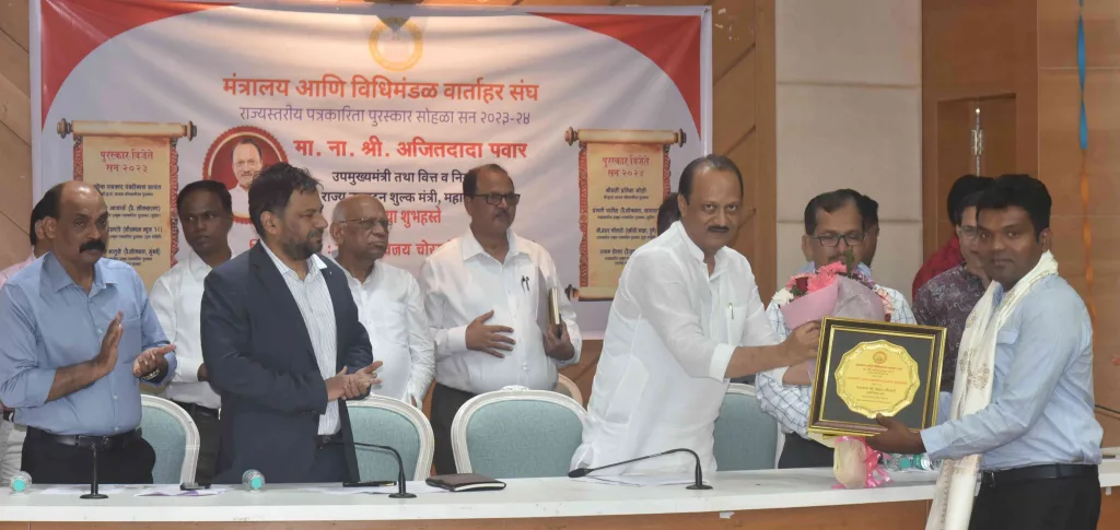 मंत्रालय आणि विधीमंडळ वार्ताहर संघाच्या वतीने देण्यात येणाऱ्या सन 2023 व सन 2024 च्या उत्कृष्ट पत्रकारिता पुरस्कारांचे वितरण उपमुख्यमंत्री श्री. पवार यांच्या हस्ते मंत्रालयातील समिती सभागृहात झाला. त्यावेळी ते बोलत होते. यावेळी विशेष अतिथी म्हणून ज्येष्ठ पत्रकार विजय चोरमारे, माहिती व जनसंपर्कचे प्रधान सचिव तथा महासंचालक ब्रिजेश सिंह, संघाचे अध्यक्ष प्रमोद डोईफोडे, उपाध्यक्ष महेश पवार, सरचिटणीस प्रवीण पुरो, खजिनदार विनोद यादव आदी उपस्थित होते.