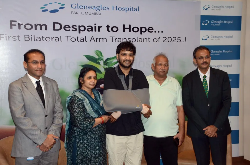 मुंबई: एका भीषण अपघातात दोन्ही हात गमावलेल्या 26 वर्षीय हृतिक सिंग परिहारला नव्या वर्षात यशस्वी हात प्रत्यारोपणाने आयुष्यातील एक अनमोल भेट मिळाली. डॉ. नीलेश सातभाई(प्लास्टिक, हँड, रिकन्स्ट्रक्टिव्ह मायक्रोसर्जरी आणि ट्रान्सप्लांटेशन विभागाचे प्रमुख, ग्लेनईगल्स हॉस्पिटल, परळ, मुंबई) आणि त्यांच्या टीमने 2025 मध्ये हॉस्पिटलचे पहिले हात प्रत्यारोपण यशस्वीरित्या पार पाडले.आजपर्यंत एकूण वेगवेगळ्या अशा २४ हातांचे प्रत्यारोपण करण्यात आले असून रूग्णालयातील हे १३ वे यशस्वी हात प्रत्यारोपण ठरले आहे.