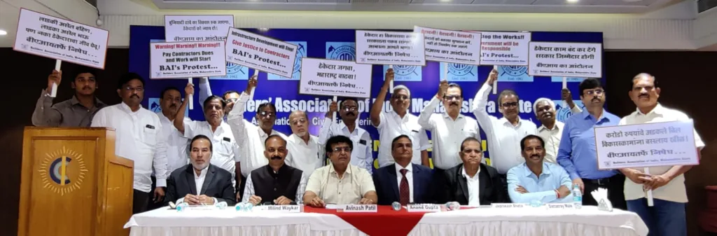 बीएआय चे उपाध्यक्ष आनंद गुप्ता यावेळी म्हणाले, सार्वजनिक बांधकाम विभागाकडून तब्बल ४६,००० कोटी रुपये, ग्रामविकास विभागाकडून ८,००० कोटी रुपये, जल जीवन मिशनकडून १८,००० कोटी रुपये, जलसंपदा विभागाकडून १९,७०० कोटी रुपये, नगरविकास विभाग १७,००० कोटी येणे बाकी आहे.