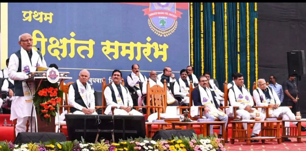 ते सातारा येथे छत्रपती शिवाजी कॉलेजच्या प्रांगणात आयोजित केलेल्या कर्मवीर भाऊराव पाटील विद्यापीठाच्या प्रथम दीक्षांत समारंभ कार्यक्रमात मार्गदर्शन करताना बोलत होते.या समारंभास राज्यपालांचे प्रधान सचिव प्रशांत नारनवरे, कर्मवीर भाऊराव पाटील विद्यापीठाचे कुलाधिकारी चंद्रकात दळवी,कुलगुरू डॉ.ज्ञानदेव म्हस्के.विकास देशमुख,डॉ. माणिकराव साळुंखे ,विद्यापीठाचे प्रभारी कुलसचिव डॉ. विजय कुंभार,डॉ.हेमंत उमाप, जे.के.जाधव, डॉ.शिवलिंग मेंनकुदळे, प्रा,डॉ.डी.नामदास,डॉ.अनिलकुमार वावरे, डॉ. महांनवर,प्रा.आरआर.साळुंखे,,प्रा.डॉ.सचीन वर्णेकर,प्राचार्य डॉ.राजेंद्र मोरे, प्राचार्य डॉ.बी.टी.जाधव,प्राचार्य डॉ.गणेश जाधव, जिल्हाधिकारी संतोष पाटील , पोलीस अधीक्षक समीर शेख ,मुख्य कार्यकारी अधिकारी यशानीनागराजन व इत्यादी मान्यवर उपस्थित होते.