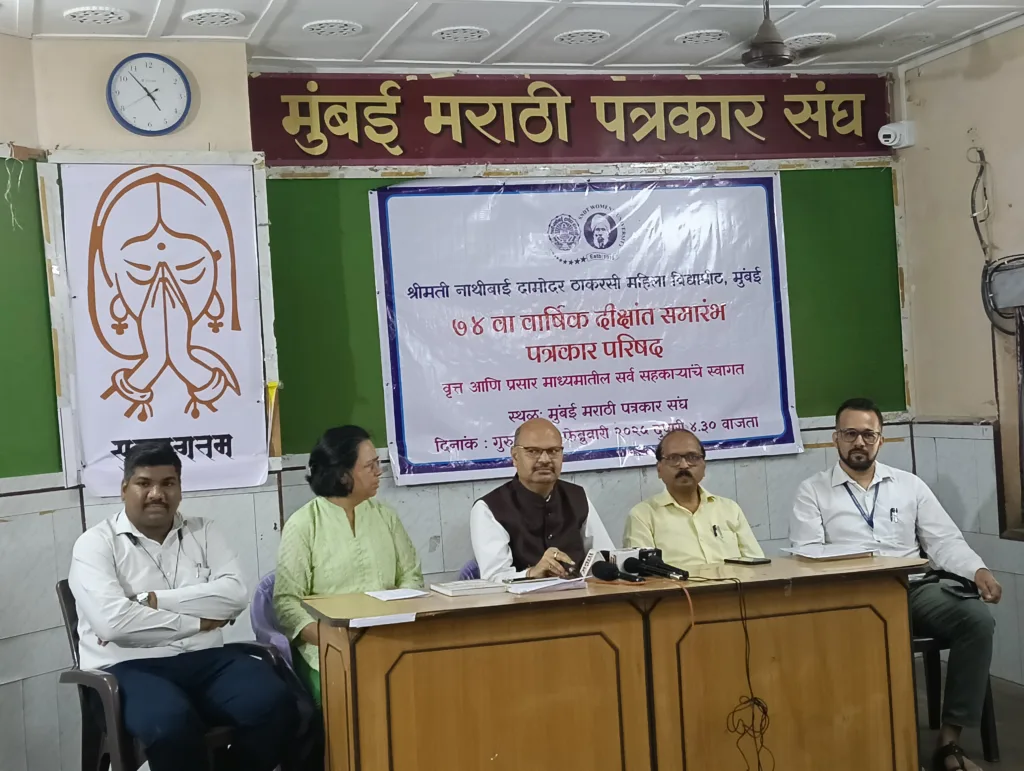प्रतिनिधी : श्रीमती नाथीबाई दामोदर ठाकरसी महिला विद्यापीठाचा (एमएनडीटी महिला विद्यापीठ) ७५ वा पदवीप्रदान सगारंभ (दिक्षांत समारंभ) १७ फेब्रुवारी रोजी सकाळी ११.०० वाजता सर सीताराम आणि लेडी शांताबाई पाटकर दीक्षांत सभागृह (पाटकर हॉल), एमएनडीटी महिला विद्यापीठ, चर्चगेट, मुंबई येथे संपन्न होणार आहे.अशी माहिती डॉ.संजय नेरकर व प्रा.मीरा देसाई यांनी पत्रकार परिषदेत दिली.