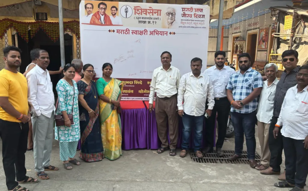 मुंबई (प्रतिनिधी) : ज्ञानपीठ पुरस्कार सन्मानित वि. वा. शिरवाडकर उर्फ कुसुमाग्रज यांच्या जयंतीनिमित्त शिवसेना (उद्धव बाळासाहेब ठाकरे) मागाठाणे शाखा क्र.१२ तर्फे मराठी राजभाषा गौरव दिनानिमित्त मराठी भाषेच्या संवर्धनासाठी स्थानिक विभागात ‘मराठी स्वाक्षरी मोहिम’ आयोजित करण्यात आली होती.*